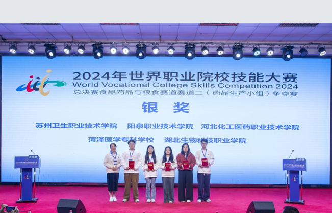 技炫青春,能创未来—2024年世界职业院校技能大赛总决赛争夺赛我院获高职组食品药品与粮食赛道赛道二药品生产小组(赛项)银奖