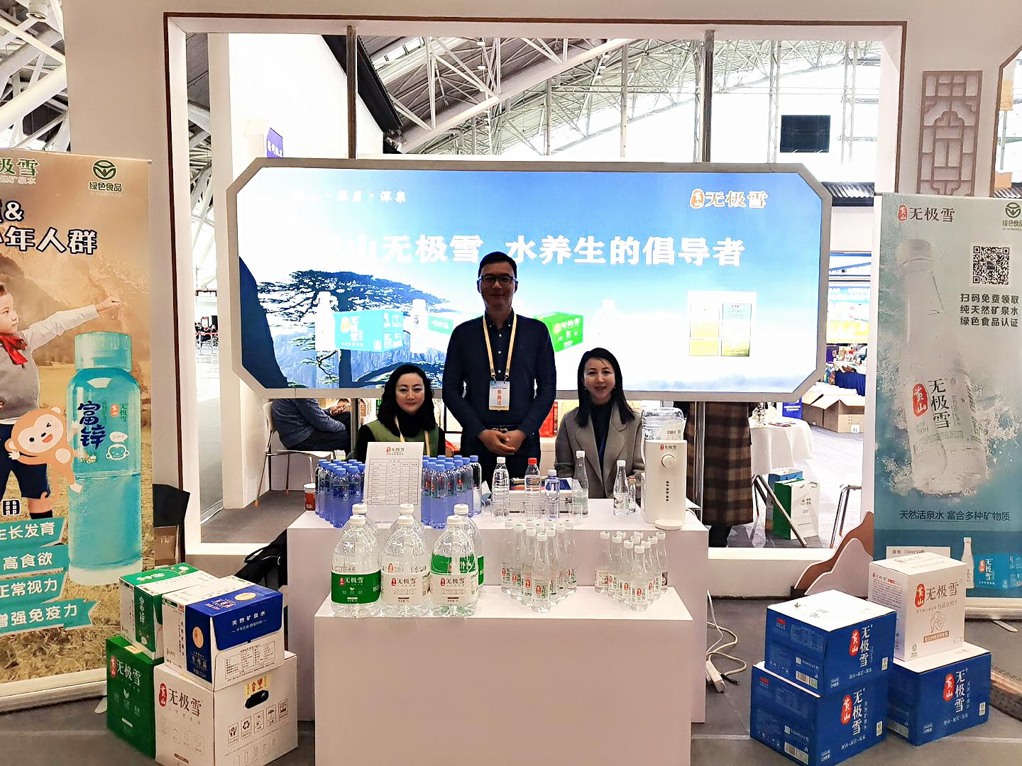 11月18日下午,2022长三角供销合作社名优农产品展销会在南京新庄国展中心举办,来自黄山市无极雪食品有限公司的天然活性矿泉水展台前市民、客商络绎不绝。