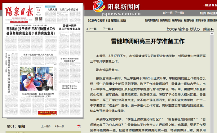 3月17日下午,市长雷健坤深入亚星手机版官方登录网站、郊区荫营中学调研高三年级开学准备工作。 副市长李君参加。 按照全省统一安排,高三学生将于3月25日正式开学…
