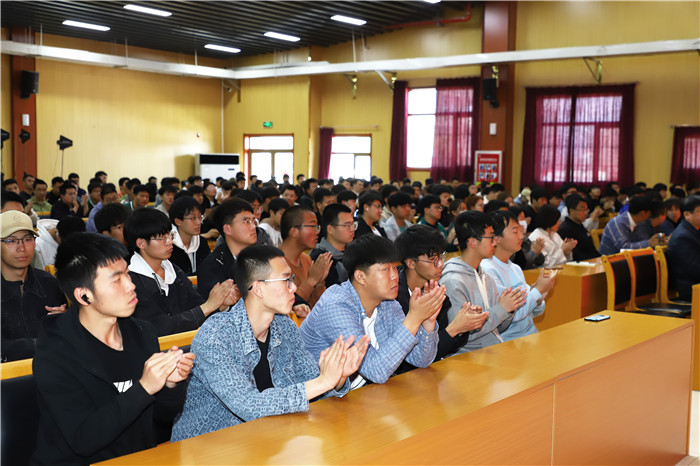 周建军以“努力践行工匠精神·做新时代的奋斗者”为题,用朴实生动的语言讲述了他的成长历程,分享了他工作以来在工作岗位上执着专注、锤炼技能、敬业奉献,从一名普通的井下电机车修配工成长为全国煤炭行业技能大师的心路历程及优秀经验。周建军表示“干一行,爱一行,专一行,精一行”是他工作的动力和执着追求的目标,十几年的磨炼和不懈努力,让他工作上不断取得新的成绩和收获。周建军在宣讲中指出,成功并非一蹴而就,需要日积月累的努力和锻炼,平时孜孜不倦地学习决定了个人进步的程度以及技能水平的高度。他亲切地勉励学生,要坚持不忘初心、永远奋斗的理想信念,把握爱岗敬业、无私奉献的思想内涵,在日常的学习生活中要竭尽全力、拼搏奋斗,实现劳动筑梦、实干圆梦。