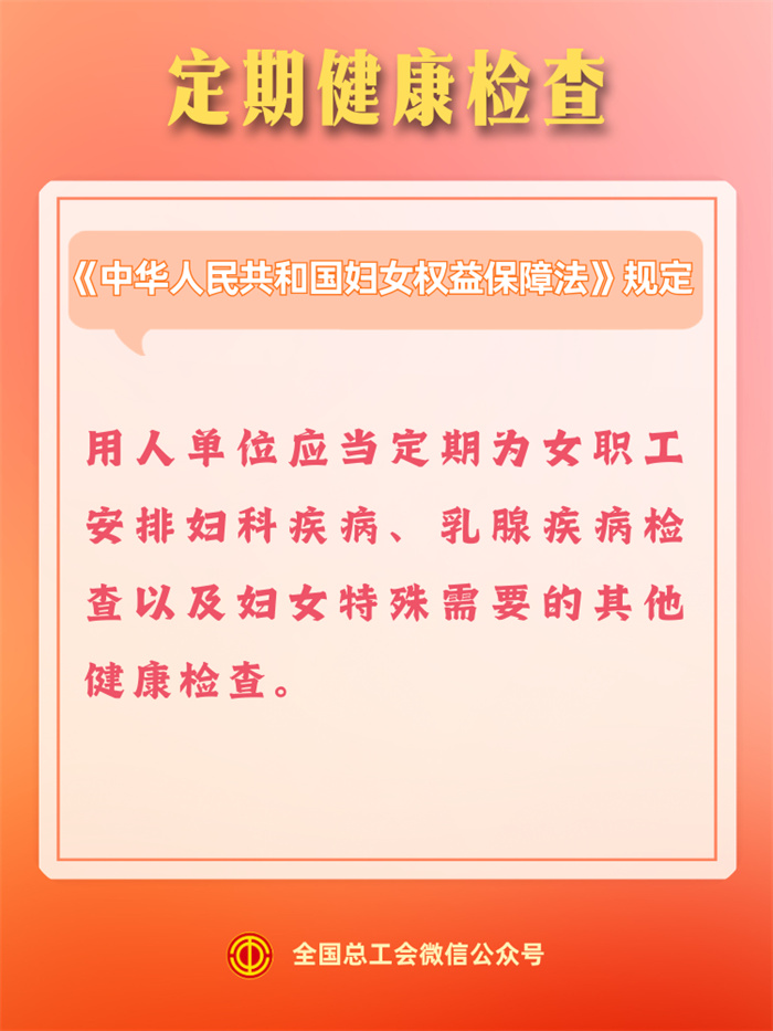 ✅ 用人单位应当定期为女职工安排妇科疾病、乳腺疾病检查。