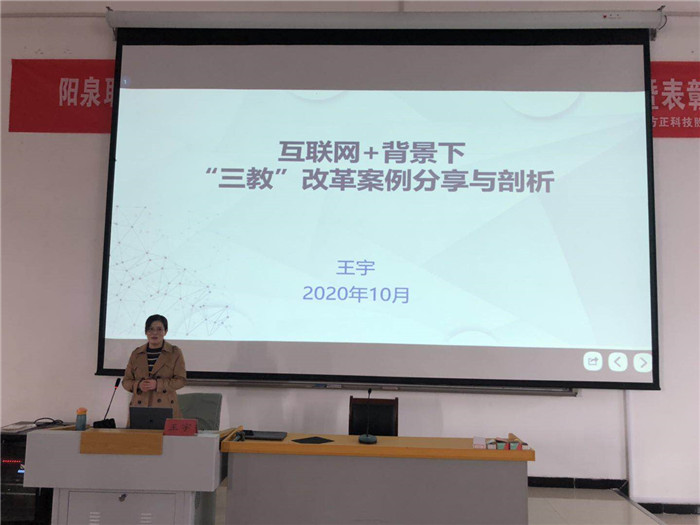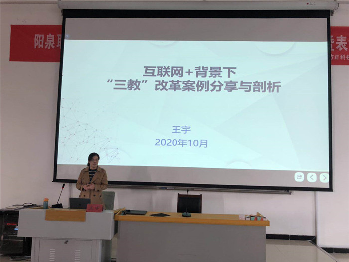 为进一步提高我院教师在三教改革和课程思政中的理论水平及实践能力,适应信息化教育教学的潮流,近日,我院有幸邀请到了山西工程职业学院电气自动化专业的王宇副教授,为我院全体教师作了以“互联网+背景下的三教改革案例分享与剖析及课程思政内容开发”为主题的讲座。全院共计约150名专任教师到场聆听。讲座由我院王海平副院长主持。